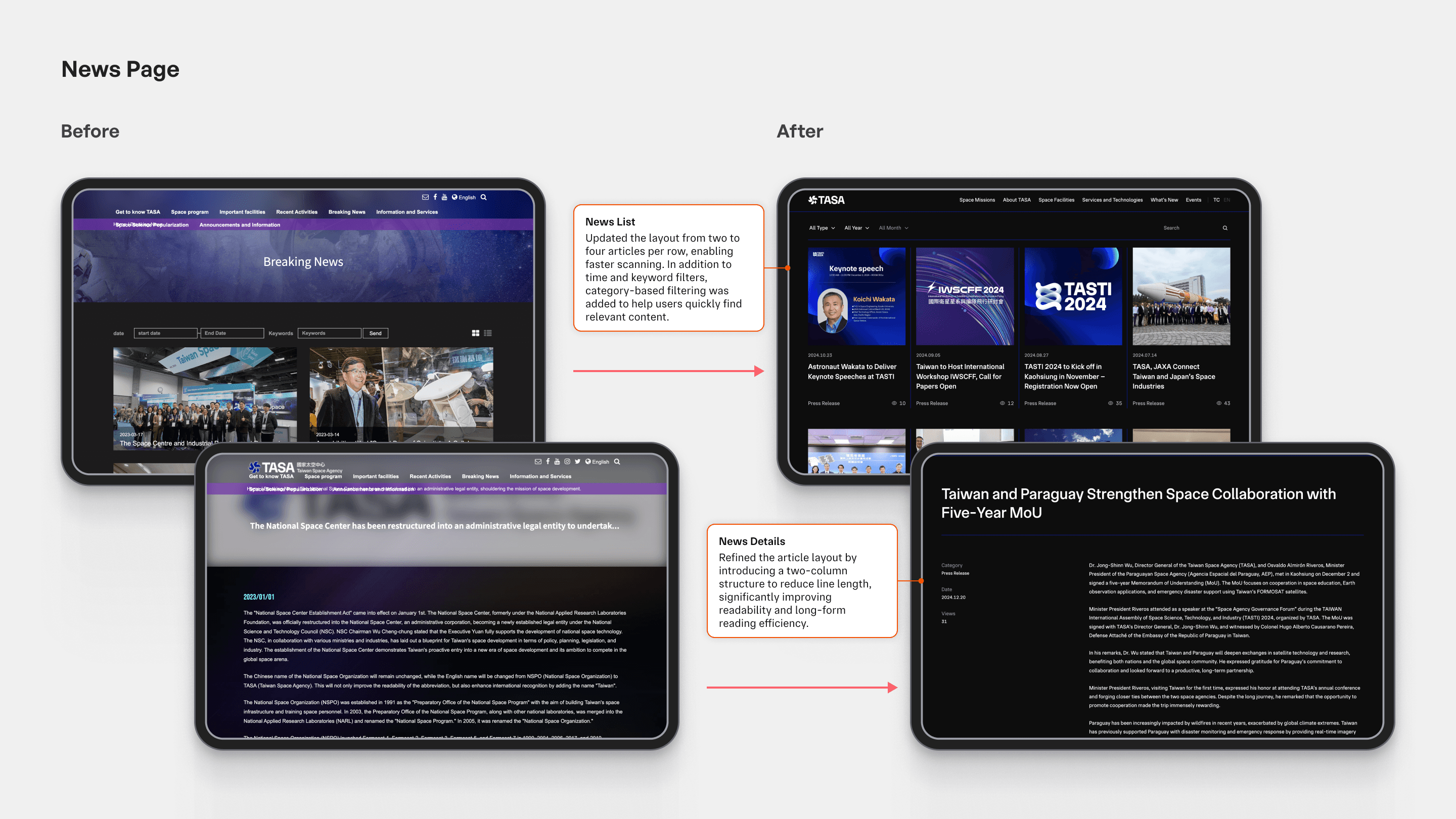 The news page surfaces key updates more clearly and uses refined layouts and filtering to support efficient scanning and confident reading.