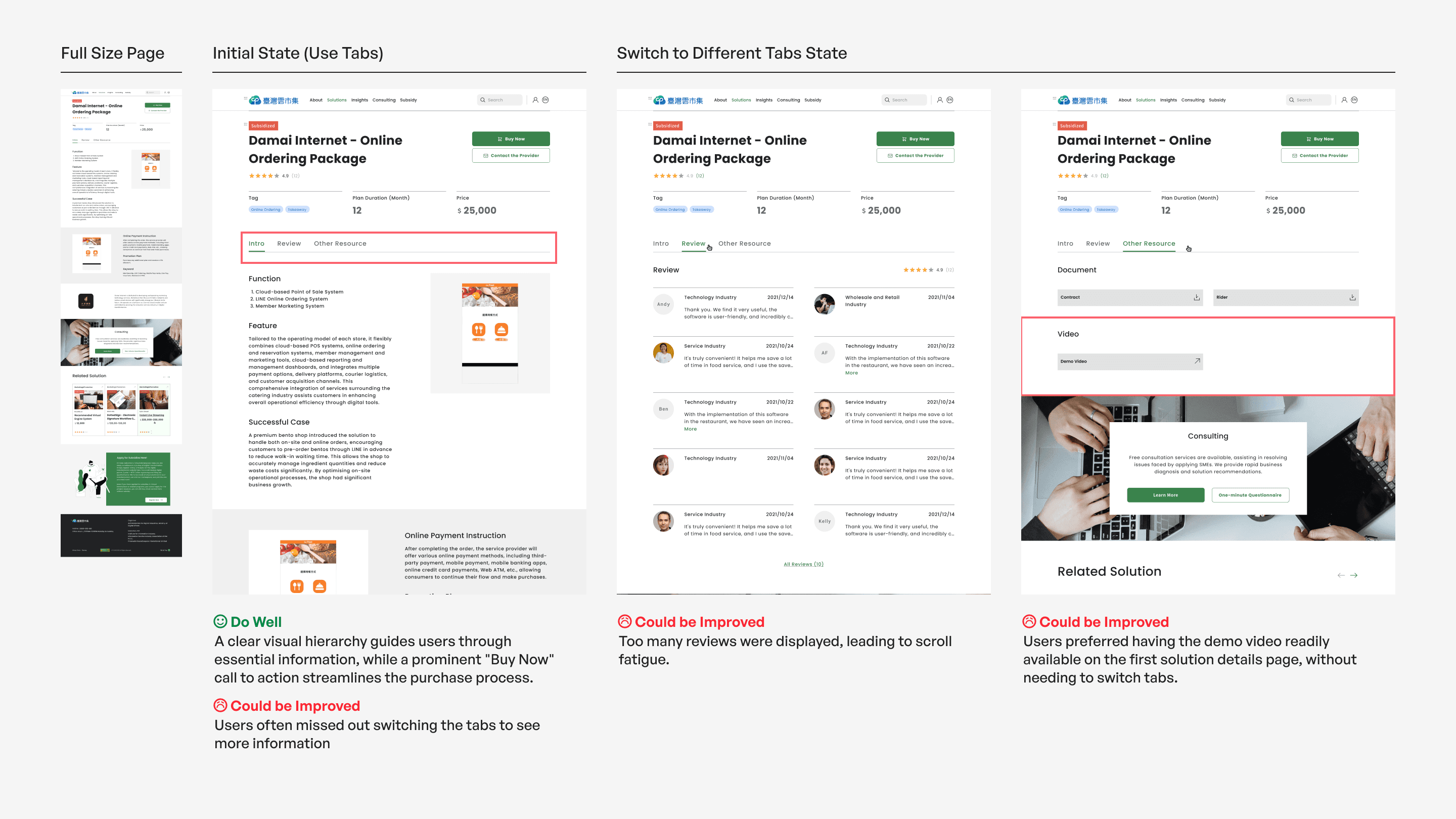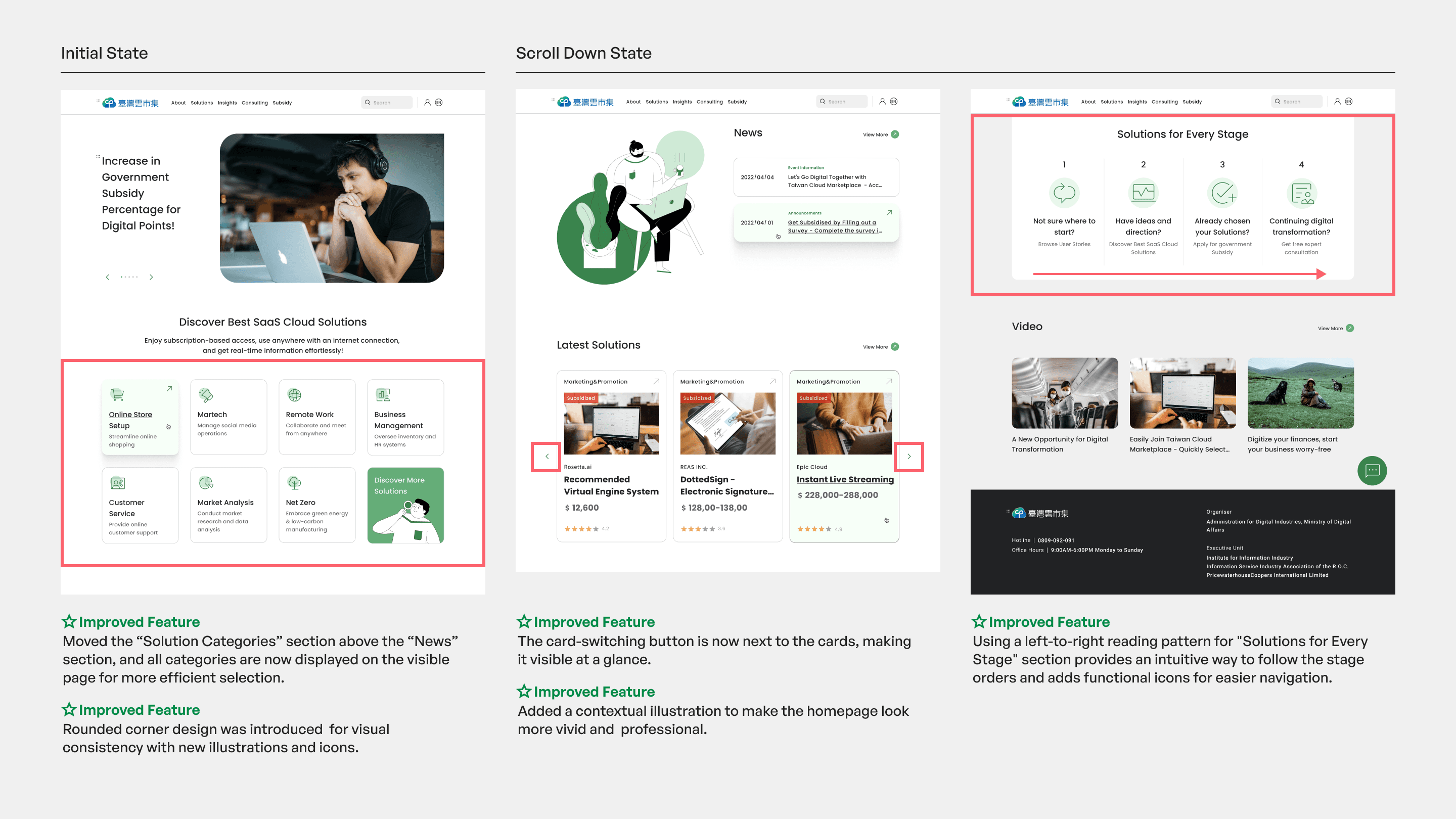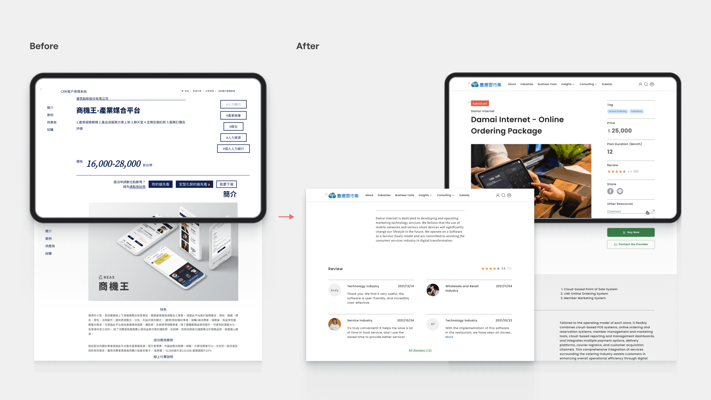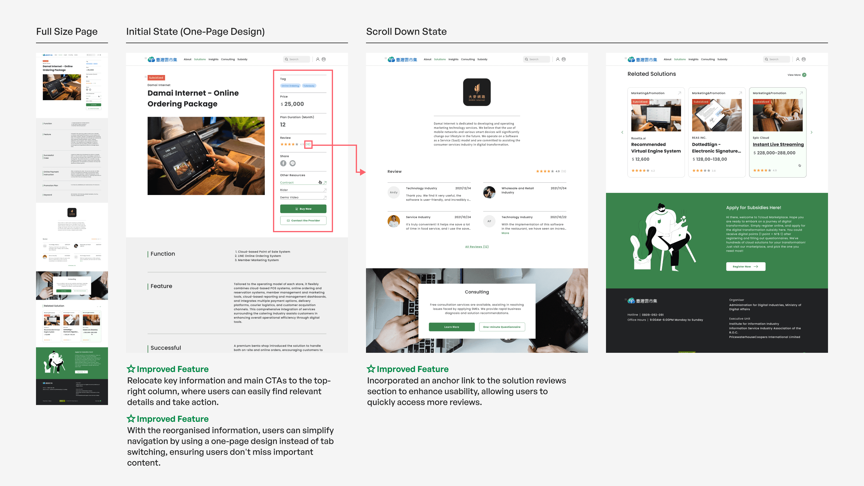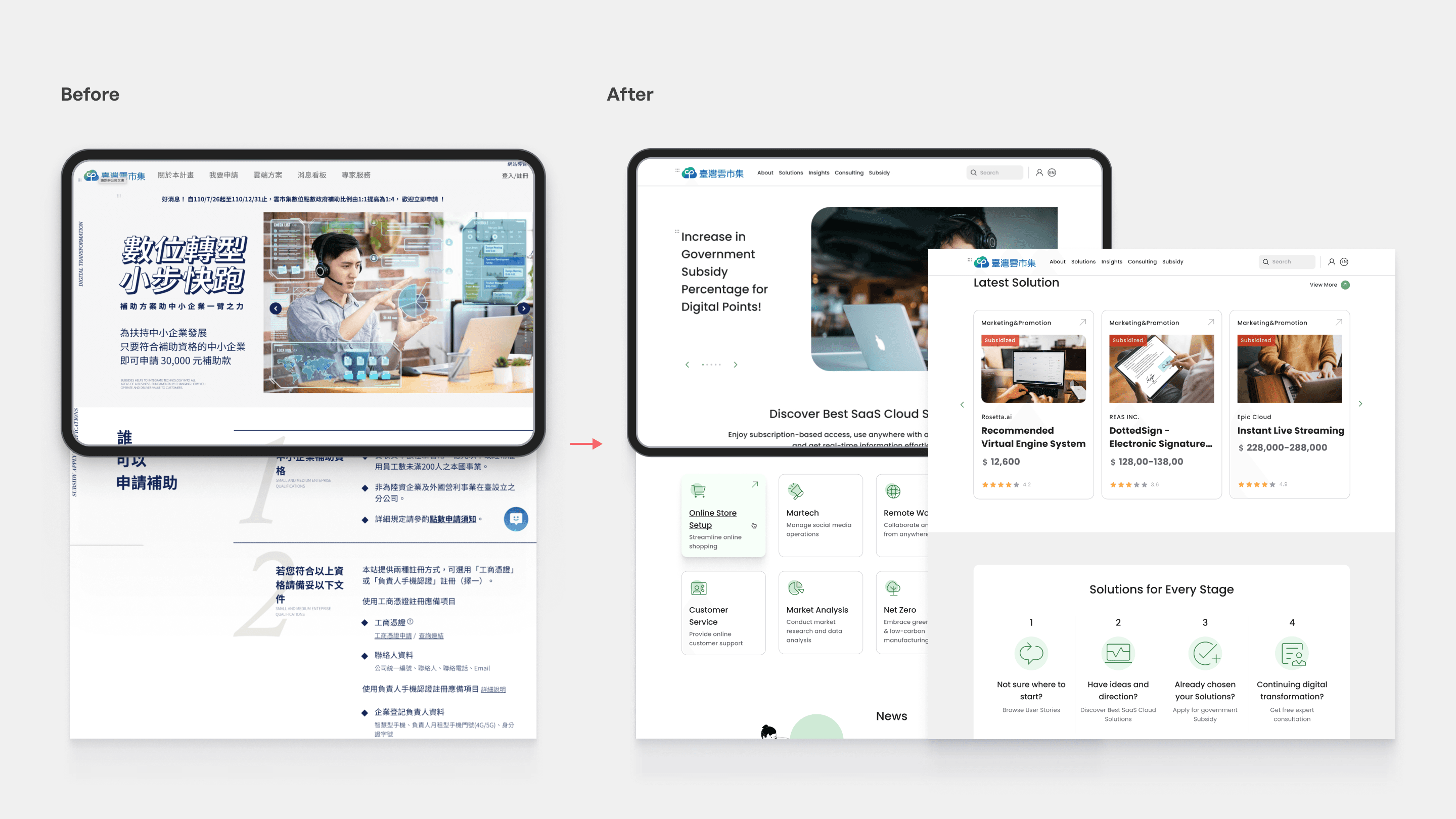 The redesigned platform features intuitive navigation and a clear information structure, enabling users to easily find the solutions they need. Moreover, a streamlined purchase flow allows them to complete transactions efficiently, while up-to-date successful user stories strengthen trust in the platform.